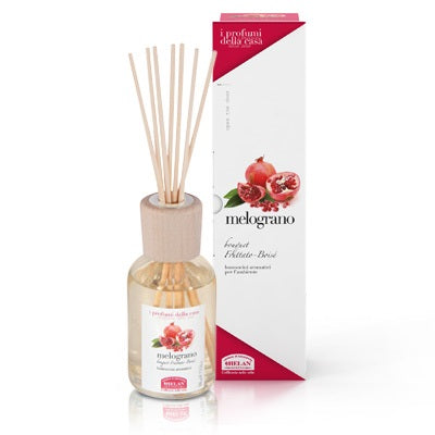 Melograno è una fragranza vivace e ricca, simbolo di longevità, fertilità e abbondanza. Un'impronta olfattiva vivace che esplode in note fruttate del Melograno, per lasciar spazio ad un tenero profumo di Melo ed Eliotropo con un tocco di bacche di Rosa, per finire con un fondo avvolgente di note muschiate amalgamandosi con il profumo raffinato del Vetiver e della Vaniglia